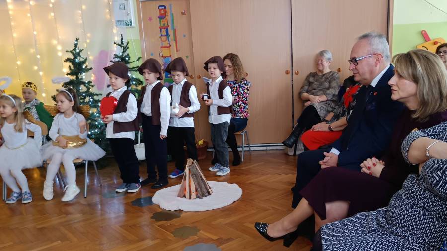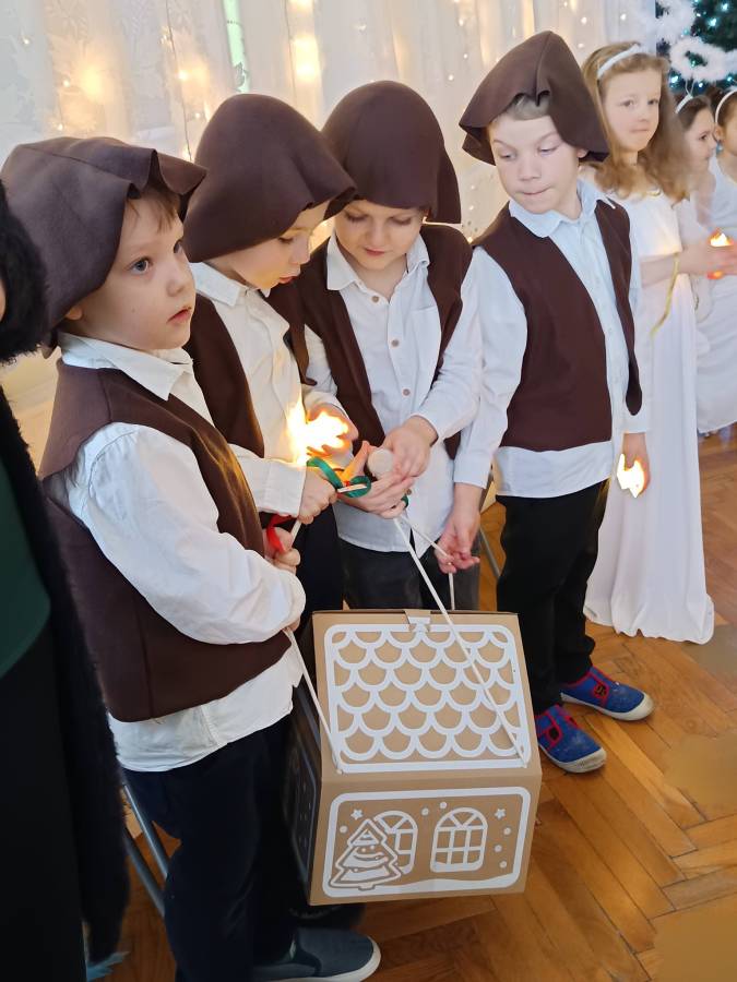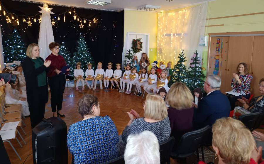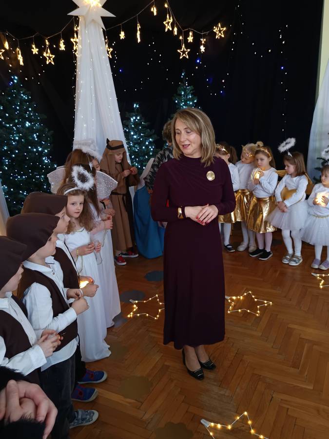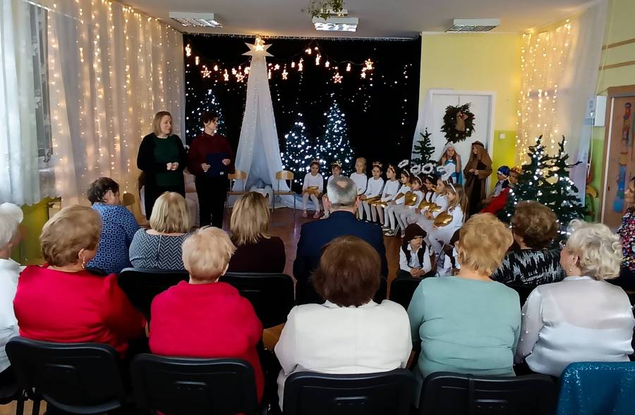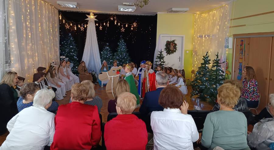 Dzieci z ogromnym zaangażowaniem zaprezentowały świąteczne przedstawienie, a wspólne kolędowanie stworzyło prawdziwie ciepłą i miłą atmosferę.